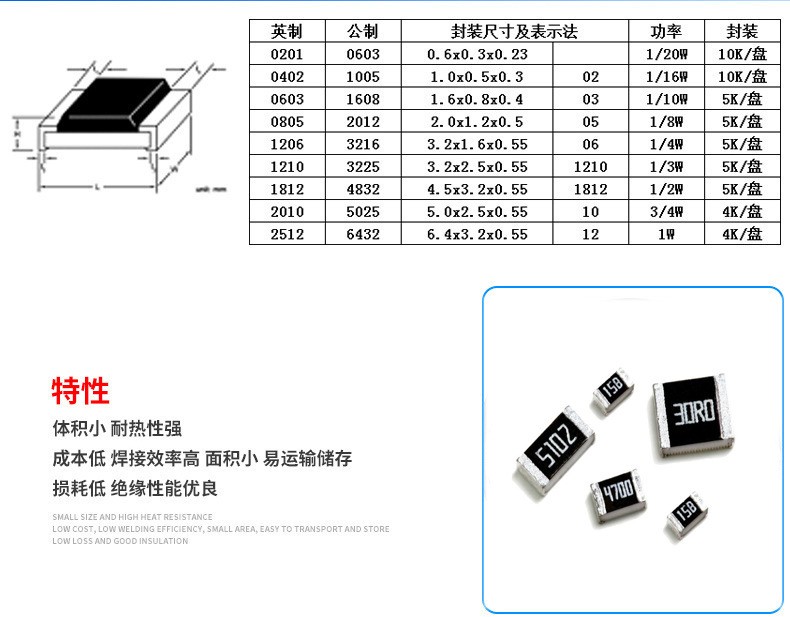 貼片電阻特性體積小,重量輕;適應再流焊與波峰焊;電性能穩定,可靠性高;